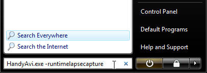 In Windows Vista, there is a "start search" box within the Start area. type HandyAvi -runmotiondetectcapture for example into the "Start Search" box and hit Enter.